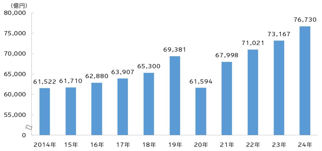 2024年の日本の広告市場は7兆6,730億円に達し、前年比4.9%増と4年連続で成長しました。